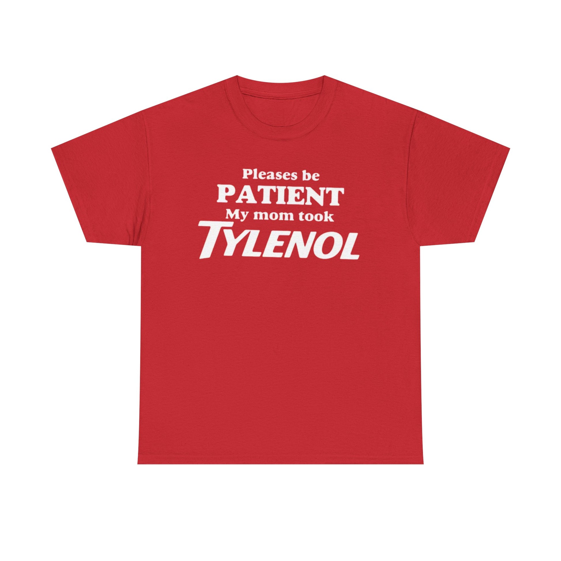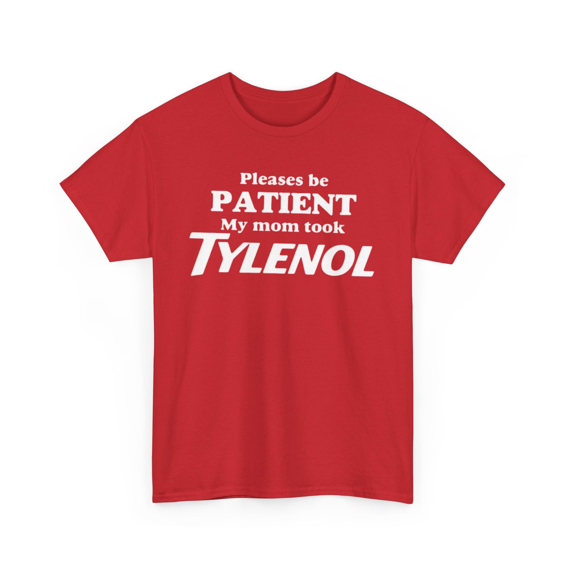 Turn heads and get laughs with our “Please Be Patient: My Mom Took Tylenol” T-Shirt – the perfect blend of humor and sarcasm. Made for anyone who loves witty graphic tees, this shirt is soft, comfortable, and designed for everyday wear. Whether you’re hanging out with friends, scrolling social media, or just looking for a conversation starter, this tee delivers.